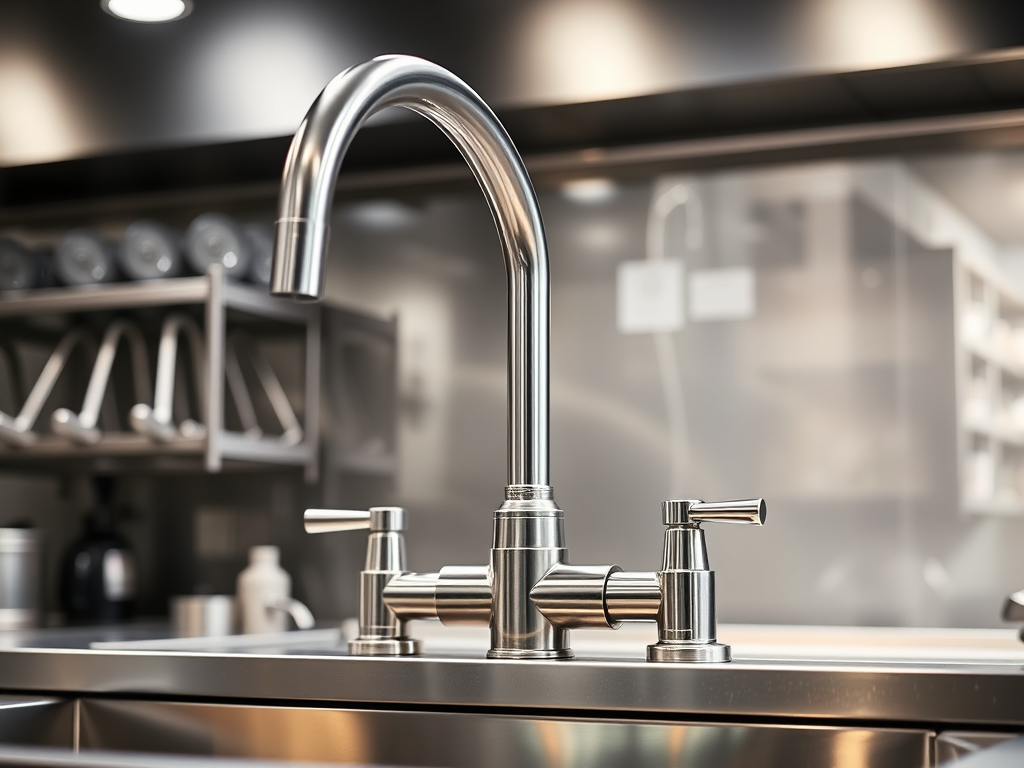 conoce nuestra línea de grifería industrial calidad para tu restaurante o muebles de acero amplia gama de productos como: llaves de prelavado, mezcladoras, cespoles, válvulas de rodilla o pedal, entre otros.